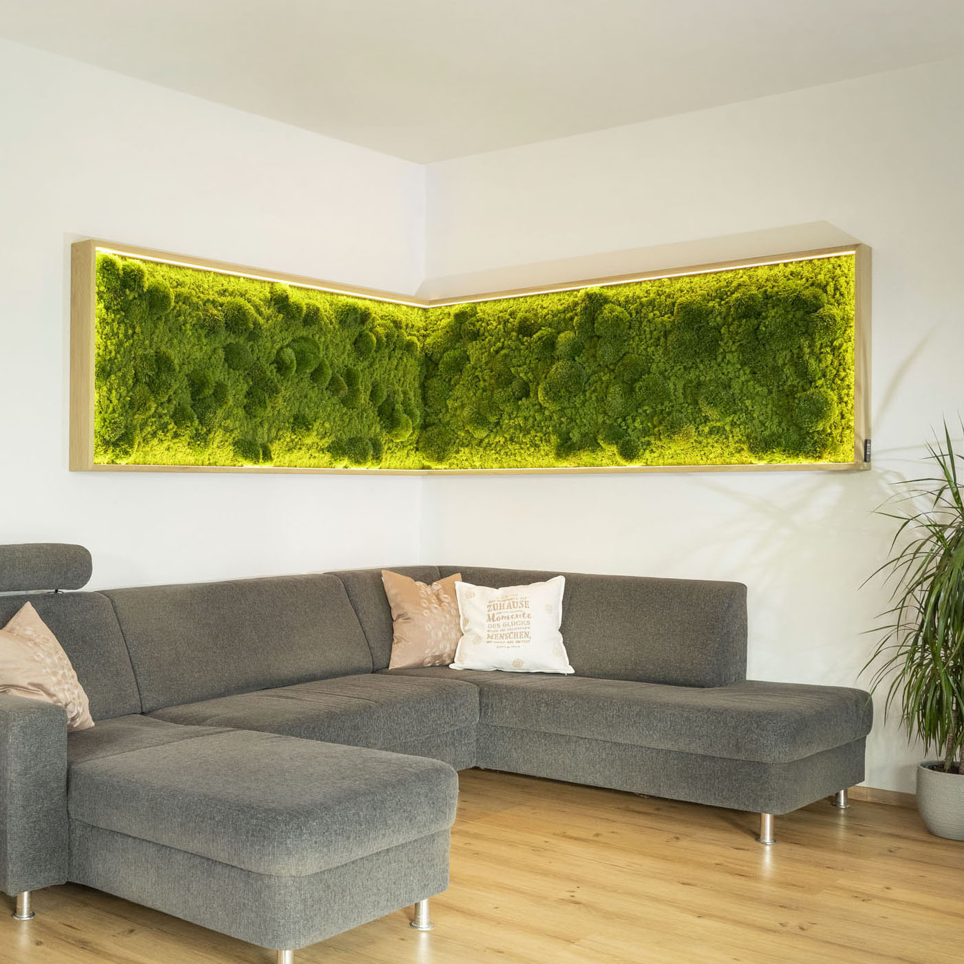 Mit gezielter Beleuchtung oder schwebender Montage wird Ihr Moosbild zu einem echten Hingucker.